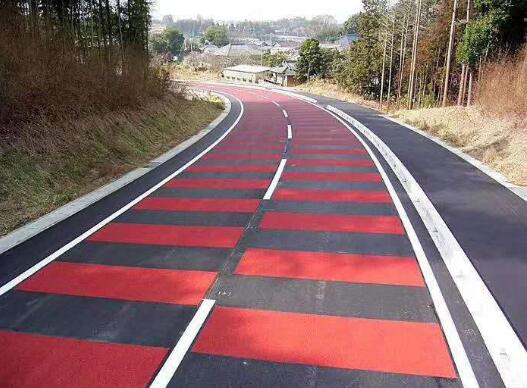 彩色防滑路面的高强度粘结材料,该材料采用部分进口成分,粘结力强,环保无毒,同时具有良好的耐腐蚀性能,有效抵抗煤油、汽油的侵蚀。有弹性,不易脆化,不易脱落,受环境和气候影响的程度较小。这种路面不仅景观美化和道路安全有明显改善,而且其表层耐磨损,对普通路面起到延长寿命的作用。可直接粘接在沥青、混凝土、铁板、木板、玉石等材料表面。路面铺设2—3mm后的改性环氧树脂,将高温合成、烧制染色的莫氏硬度7以上的高强度骨料分布在树脂上,树脂完全固化后去除多馀骨料。这种路面颜色鲜艳,路面摩擦值在70以上。通过选择不同粒径的骨料,得到适合不同情况的路面。